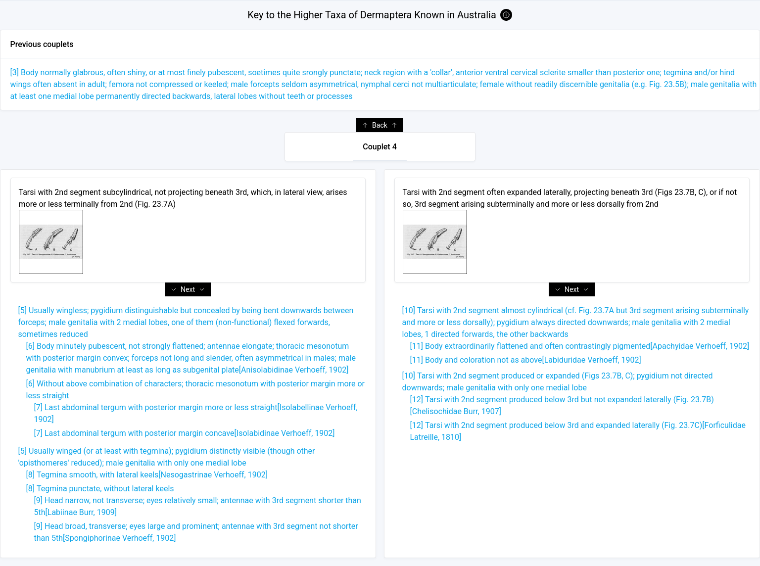 Note that couplet 2b directs the user to couplet 3. Go to top of right column and click on