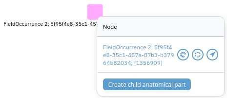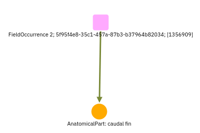 Note that, as we mentioned in the tip above and you can now see in the screenshot, the Field Occurrence in our graph is in fact the origin of an OriginRelationship from the field occurrence to our anatomical part (we won't normally need to be aware of that though).
