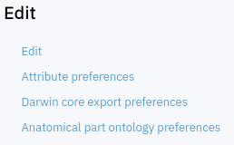 To provide your users with more specific ontology search options for your project, click on the Project link in the upper right corner when logged in to a project, and then click on 'Anatomical part ontology preferences' under Edit (only visible if you're a project administrator):