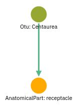 - AnatomicalPart (receptacle) has_origin OTU (knapweed), with subsequent BiologicalAssociation "OTU (Larinus weevil) -> 'pupates in' -> receptacle (of knapweeds)"